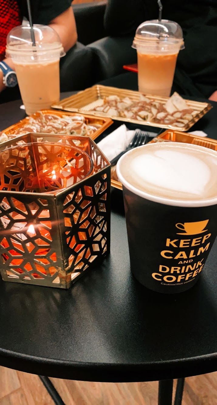 مقهى جميل ورايق.. الحلى لذيذ جداً جداً جداً خاصة الكريب بالكوكيز 😋😋👌 تعامل الموظفين راقي .القهوه جيده والحلى مرتب ولذيذ