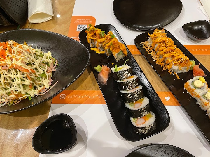 لذيذ ويستاهل الزيارة . طلبنا سلطة اشي كراب. و سلطة السالمون مع الافوكادو. كان لذيذ بس خرجنا حاسين اننا ماكلين ذبيحة. يمكن علشان خياراتنا كانت اغلبها مطبوخة وزيت وكذا . مدري . بس اول مرة يحصل معانا الشي داة. برغم زيارتنا لمطاعم سوشي كثيرة. الطلب كان لثلاث اشخاص. مع مويا