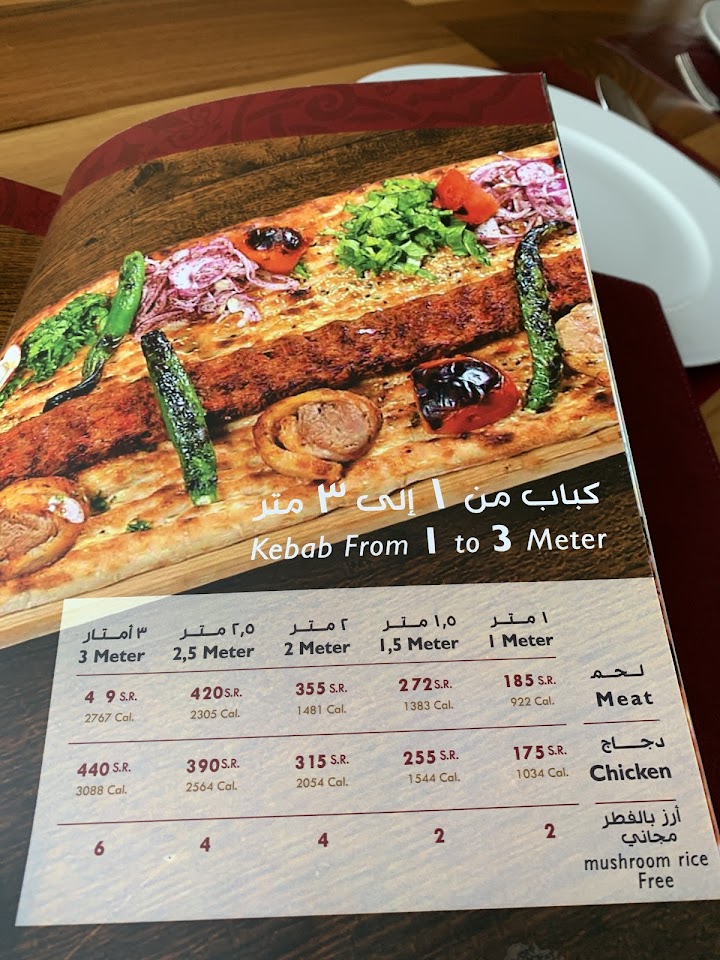 أكلة ممتاز. جربنا كباب أورفة، اسكندر لحم، شاورما، كباب دجاج، كباب بالفطر، و طاجن دجاج بالجبن بالأضافة للعصائر الطبيعية و المقبلات المشكلة. جميع الأصناف طعمها رائع و ما طولت في التحضير رغم أن المطعم مزدحم. الخدمة كانت رائعة و الشباب محترم جدا و متعاون. الأسعار مقارنة بالخدمة و النظافة و الاكل تعتبر معقولة جدا ، فاتورتنا بقيمة ٣٣٢ ريال لخمسة أشخاص. المكان رائع للعوائل نظرا لوجود حواجز و خصوصية مريحة