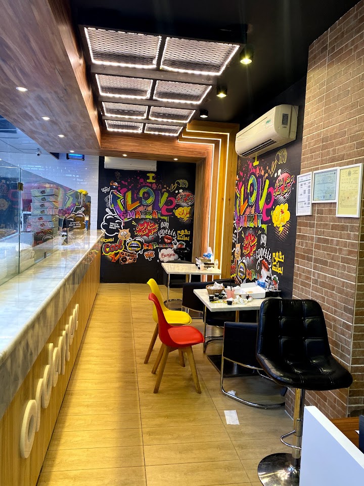 ديكوراتهم حلوه جدًا وشبابية، ماعندهم قسم للعوائل بس عندهم قسم للافراد فيه طاولتين ومعتمدين على الطلبات الخارجية